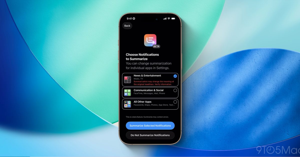 When you update to iOS 26 beta 4, you’ll see a new setup flow that allows you to choose to enable notification summaries for the “News & Entertainment” category of apps.