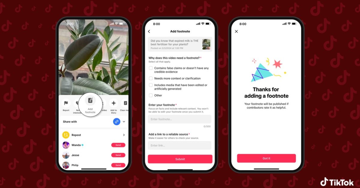 Video streaming platform TikTok is finally introducing community fact-checking, in the form of TikTok Footnotes – the equivalent to X’s Community Notes. This is initially available in the US only.