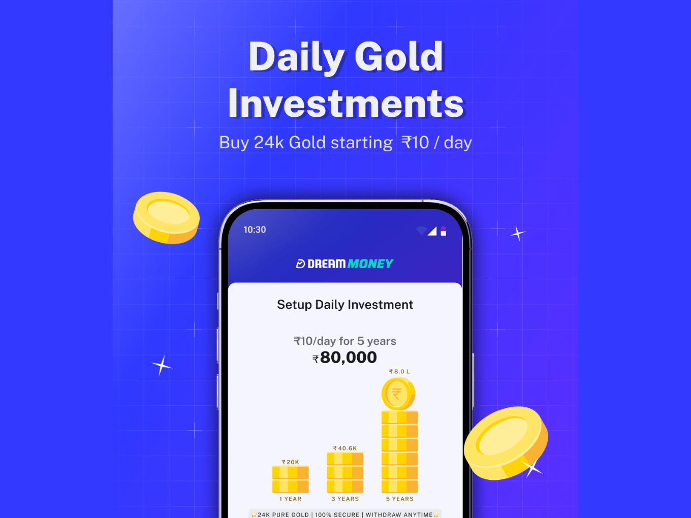 The Dream Money app facilitates users with investment in gold and fixed deposits, along with expense tracking options