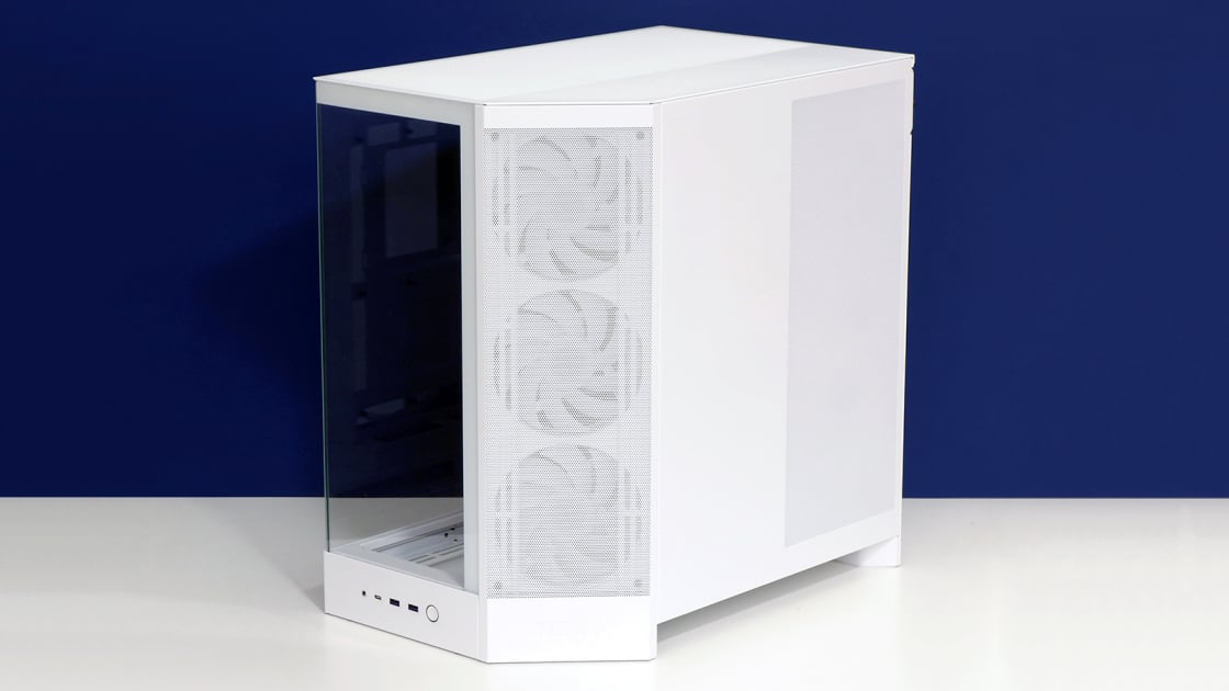 NZXT offers the H9 Flow in three versions. The first is a $169.99 base model (no “RGB”) with three ordinary fans up front and one in the rear. Our $209.99 RGB test model comes with three RGB-equipped fans up front, but uniquely encased in one combined fan “unit” (more about which later) that NZXT calls its RGB Core Single Frame design; the rear fan is a single RGB spinner. Last, a top-end RGB Plus model ($289.99) includes a second RGB Core Single Frame triple-fan unit on the case bottom.