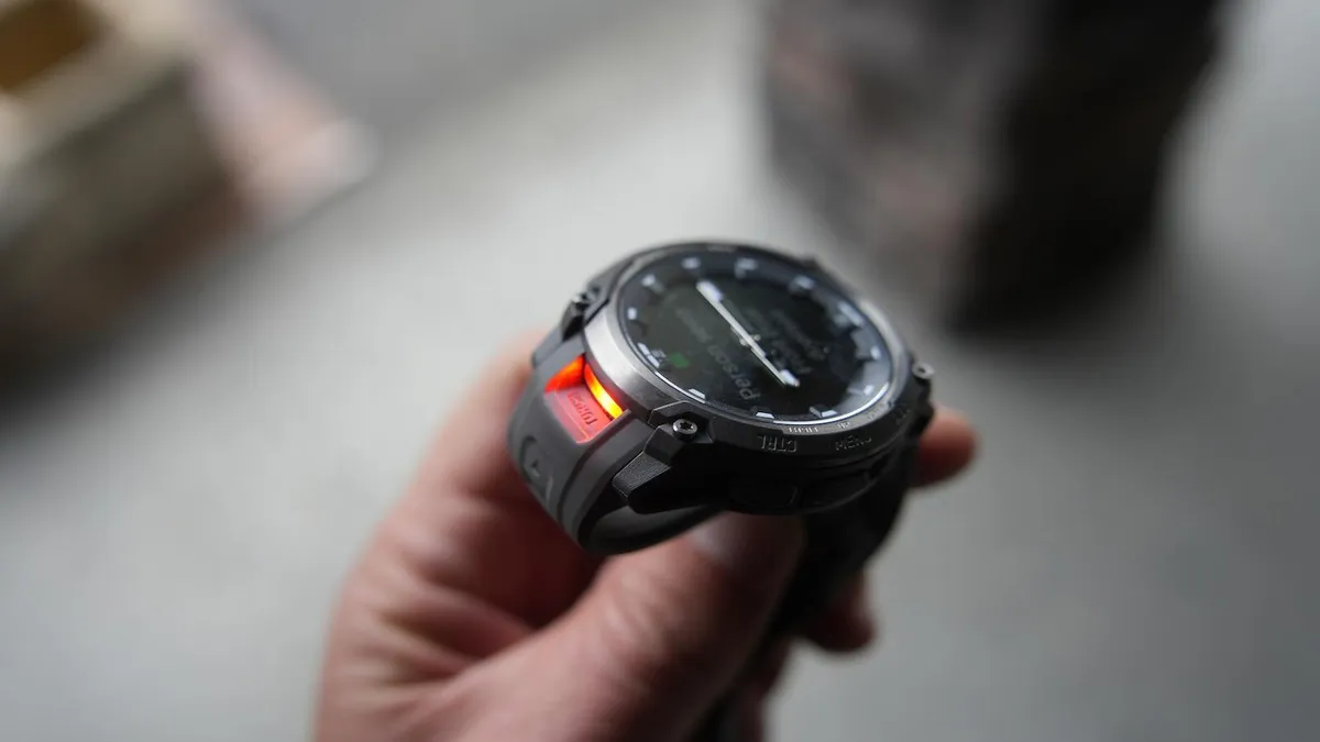 • The two-week battery life, integrated flashlight, rugged build, and dynamic AMOLED display make this a fantastic smartwatch for outdoor adventures.