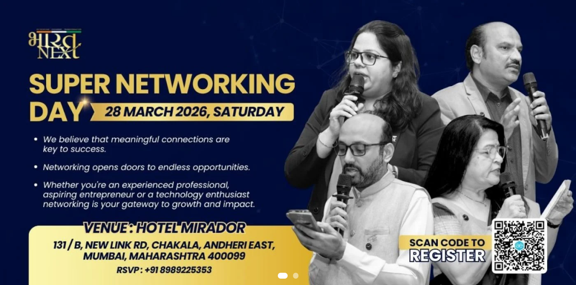 Step into the future of networking at the BHARATNEXT SUPERNETWORKING DAY! Join us at Hotel Mirador, 131/B, New Link Road, Chaklaa Andheri East on March 28th 2026 at 07:00 AM in Mumbai Maharashtra for an event like no other.