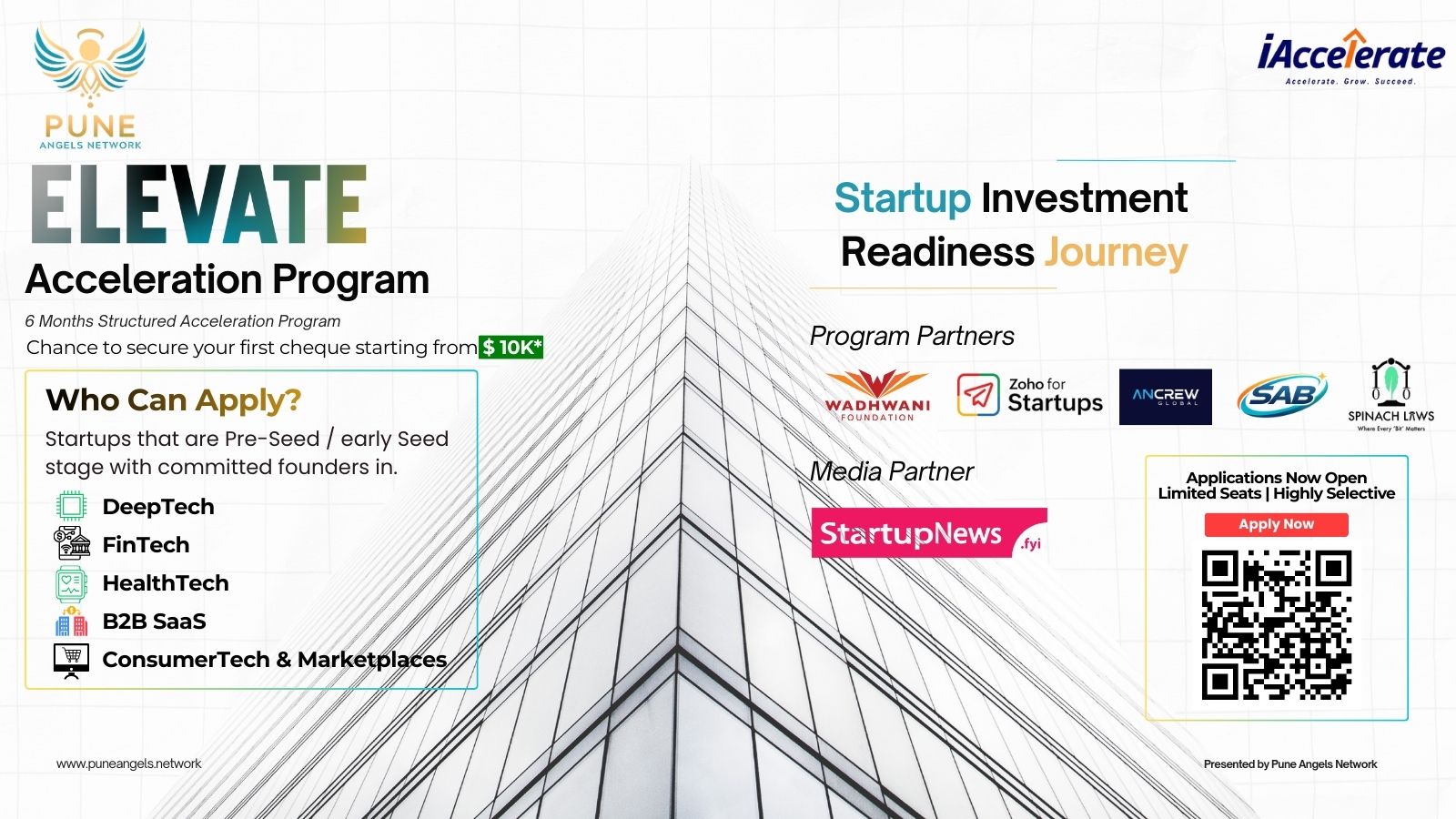 PAN Elevate is a cohort-based startup acceleration program by Pune Angels Network designed to help early-stage founders build scalable businesses and become fully investor ready. The program follows a structured, milestone-driven roadmap that combines expert mentoring, execution tracking, flagship Bootcamps, and direct access to angels, early stage funds, and ecosystem partners, with selected startups chance to be considered for $10,000* in investor funding, subject to selection and due diligence.
