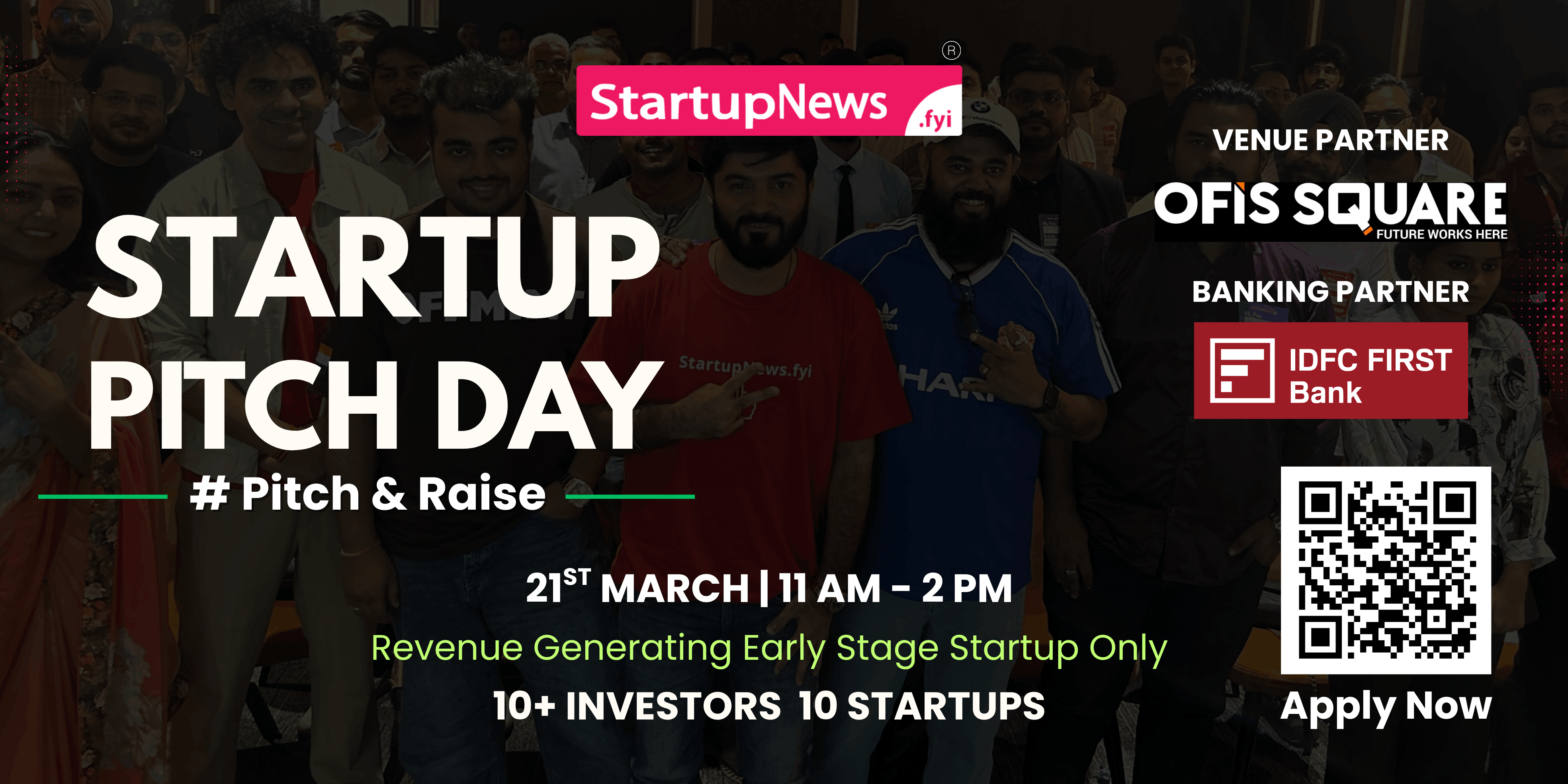 StartupNews.fyi presents Startup Pitch Day Gurugram, a curated startup pitching event designed for revenue-generating early-stage startups looking to raise capital and connect with active investors.